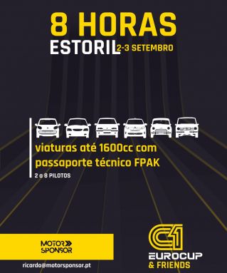 Dias 2 e 3 de setembro, o Circuito do Estoril recebe a terceira ronda da época da C1 Eurocup, as 8H do Estoril. Uma jornada em que a competição organizada pela Motor Sponsor surge com uma grande novidade, a abertura da grelha a viaturas até 1.600CC, sem limite de idade e com passaporte técnico FPAK.